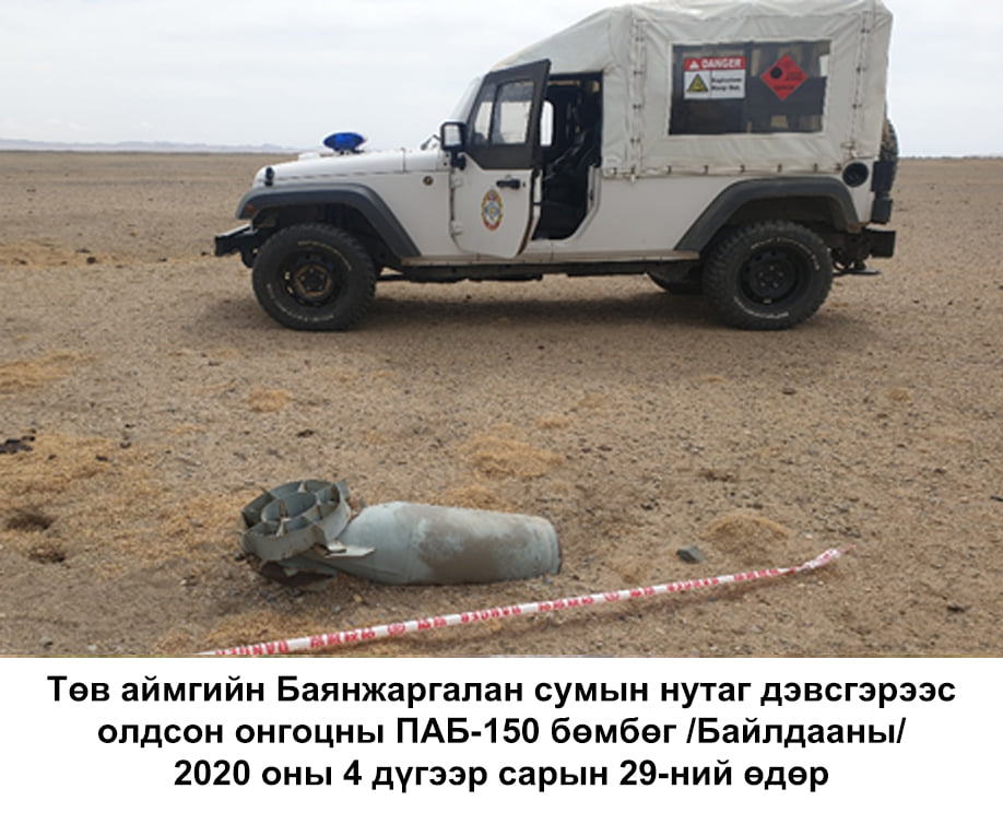Иймд иргэн, аж ахуйн нэгж, байгууллагууд хэрэв цэргийн зориулалттай тэсэрч, дэлбэрэх зүйлийг олсон, илрүүлсэн эсвэл байж болзошгүй гэж үзвэл холбогдох дүрэм, журмын дагуу уг зүйлийг хөндөх, хөдөлгөхийг хатуу хориглох бөгөөд тухайн газар оронд аль болох хүн, мал, амьтныг ойртуулахгүйгээр тэмдэглэн яаралтай цагдаагийн байгууллагад мэдэгдэж, улмаар мэргэжлийн бүлгийн бүрэлдэхүүнийг иртэл хамгаалалтад авахуулах шаардлагатай байна гэж Зэвсэгт хүчний жанжин штабаас мэдээллээ.