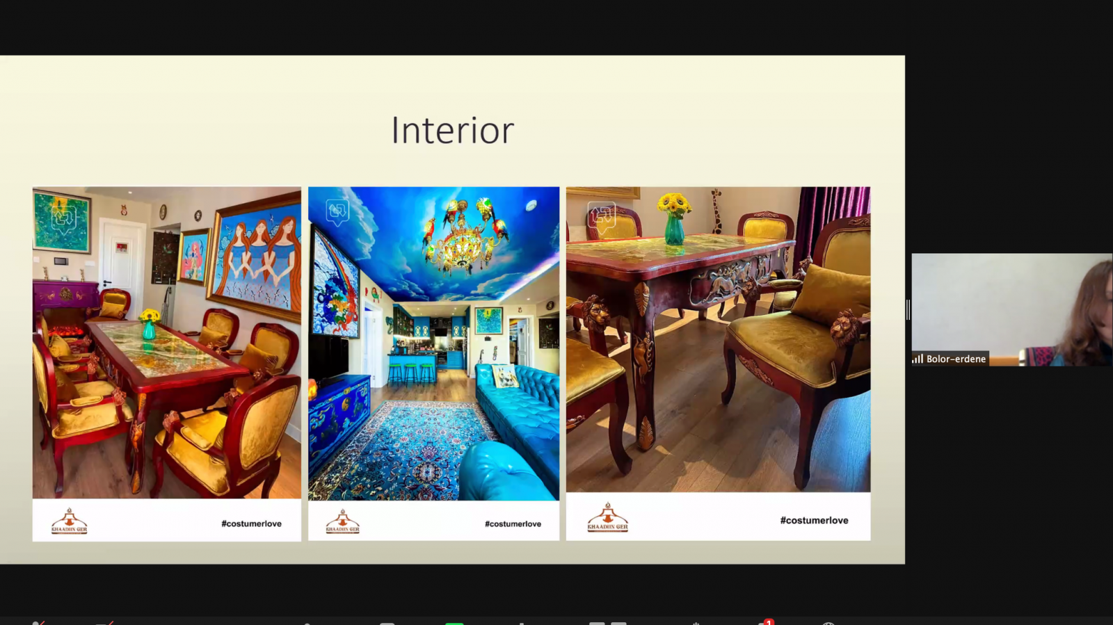 Өнөөдрийн арга хэмжээнд “Хаадын гэр” ХХК-ийн ерөнхий захирал Д.Болор-Эрдэнэ оролцож, бүтээгдэхүүнээ танилцууллаа.