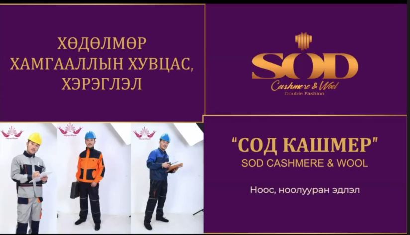 2009 оноос хойш оёдлын чиглэлээр тасралтгүй үйл ажиллагаа явуулж буй тус компани бүх төрлийн ажлын хувцсыг захиалагч байгууллага, иргэдийн хүссэн өнгө, загвар хийцээр хурдан хугацаанд хийж өгдөг арвин туршлагатай. Дүүргийнхээ Жижиг, дунд үйлдвэрийг дэмжих мэдээлэл сургалтын төвтэй хамтран кластераар өрх болон бичил бизнес эрхлэгчдийг хөгжүүлж ажил үйлчилгээ, шардлагатай тохиолдолд нэмэлтээр тоног төхөөрөмжөөр ханган амжилттай ажиллаж байгаагаа танилцууллаа.