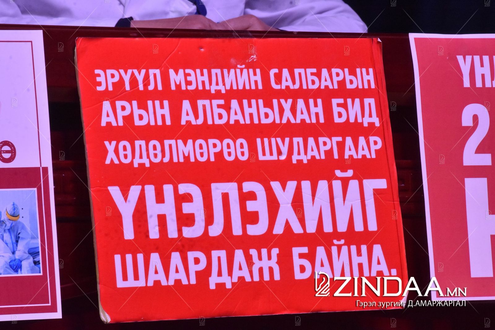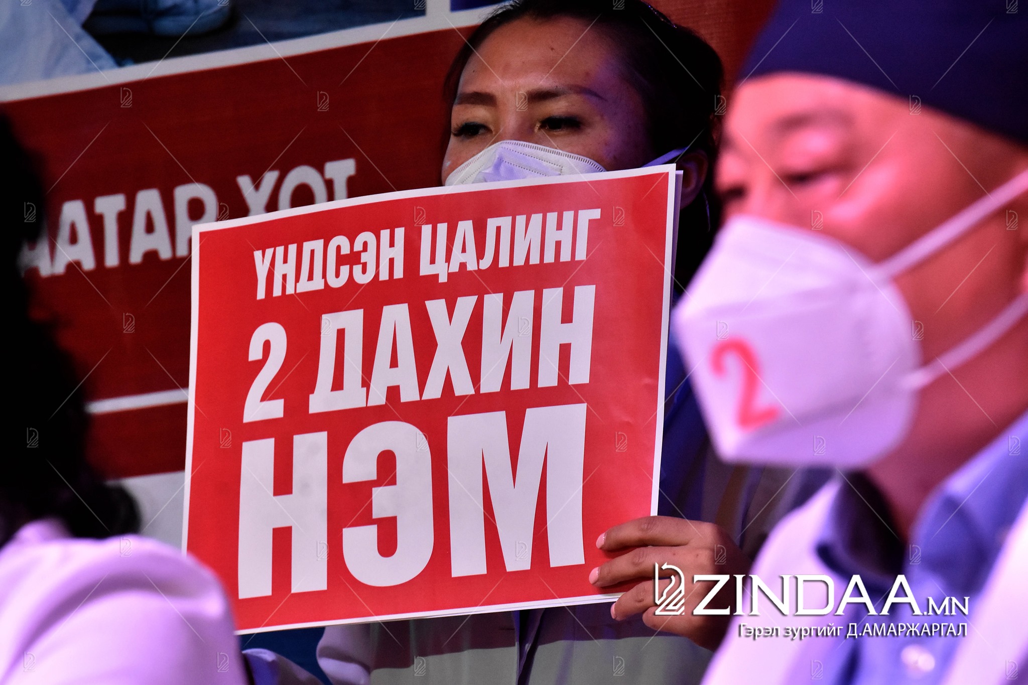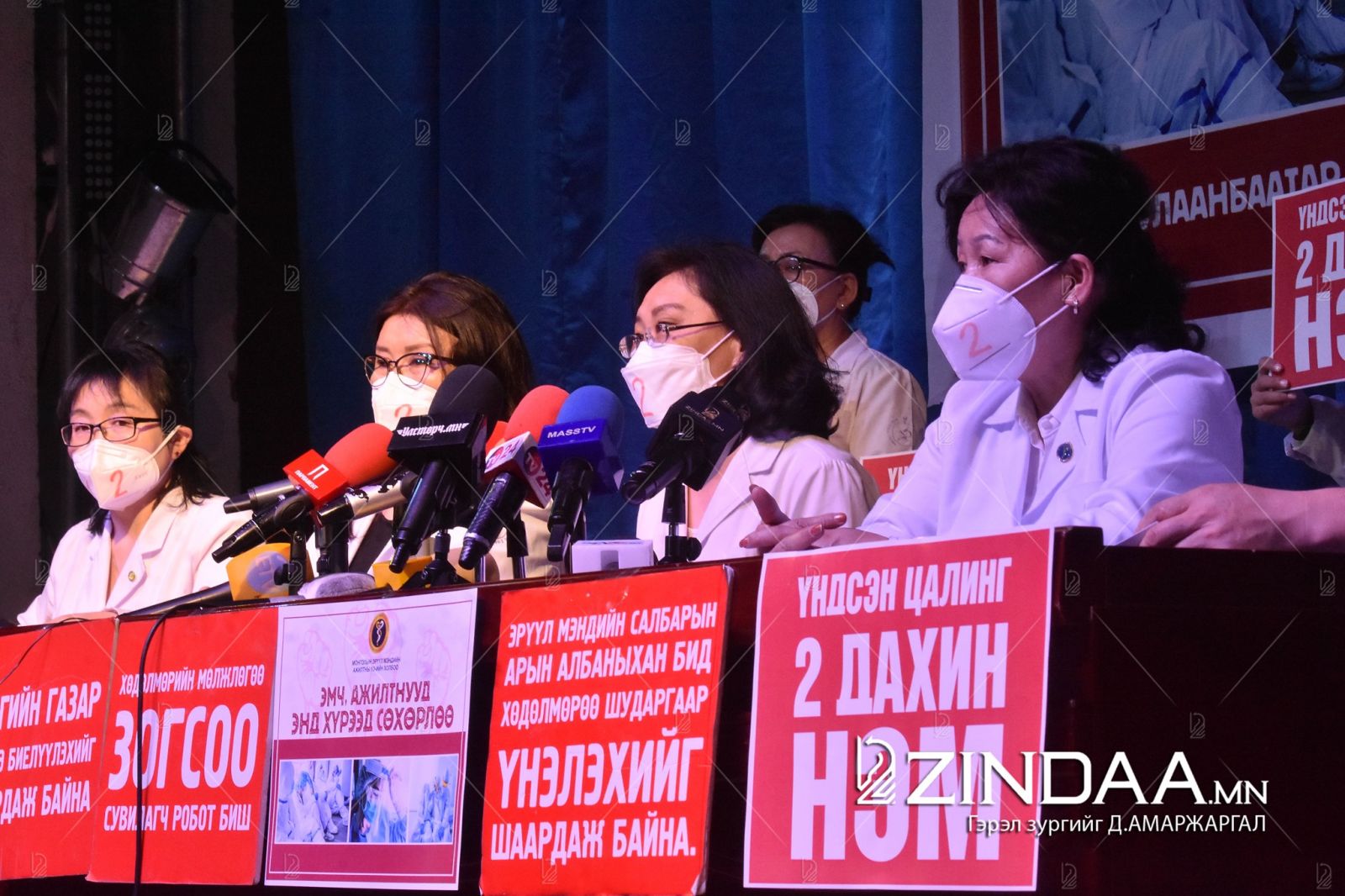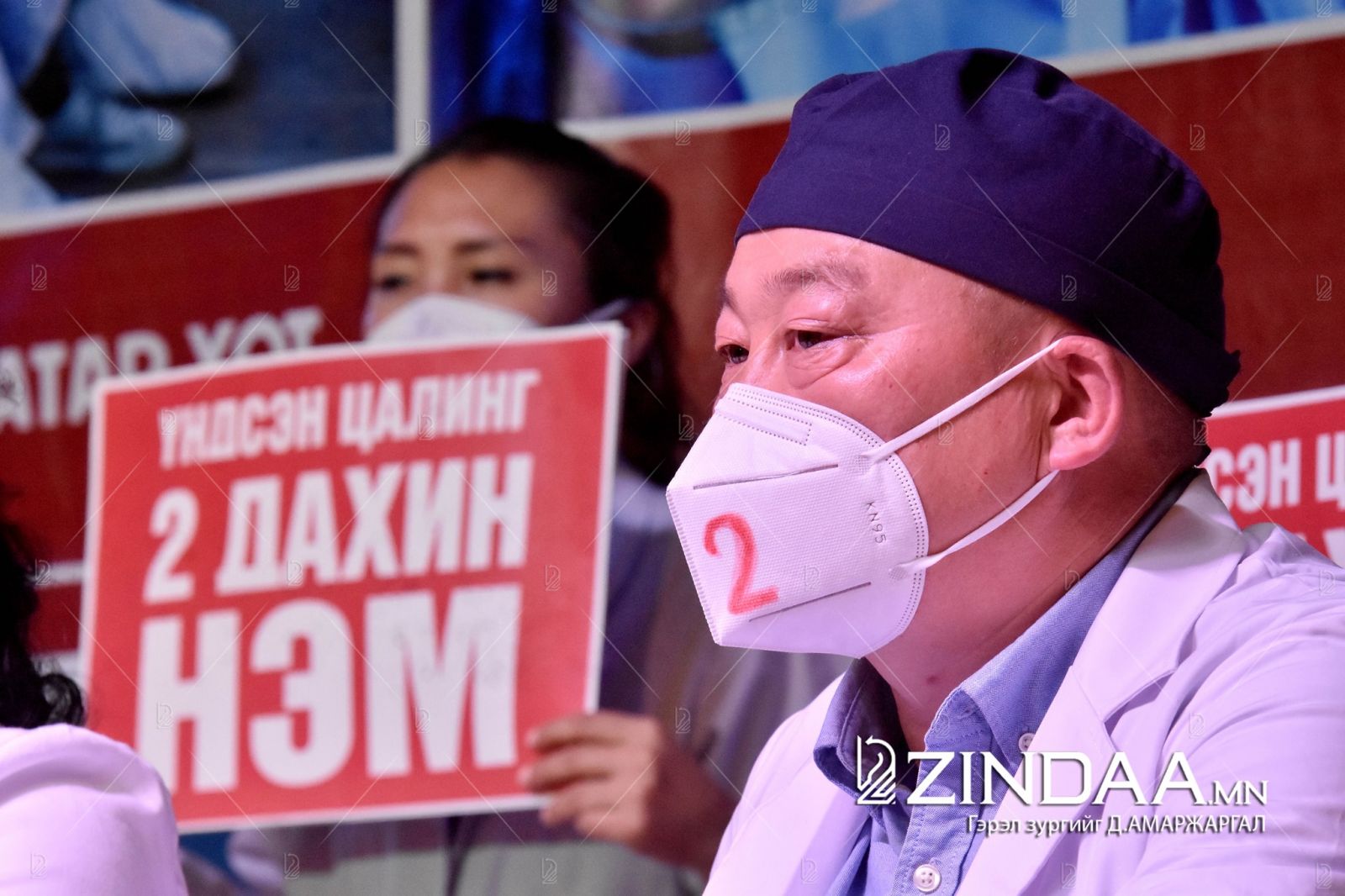 Эмч нарын зүгээс эмнэлгийн ажилтнуудын цалинг хоёр дахин нэмэхийг шаардаж, цар тахлын үед эрүүл мэндийн салбарынхан ачааллаа дийлэхгүй элгээрээ хэвтэхэд хүрээд байгааг хэлсэн юм. Цаашид халдварыг хумихгүй бол эмч, ажилчид хүрэлцэхгүй гэдгийг тэд мэдэгдлээ.