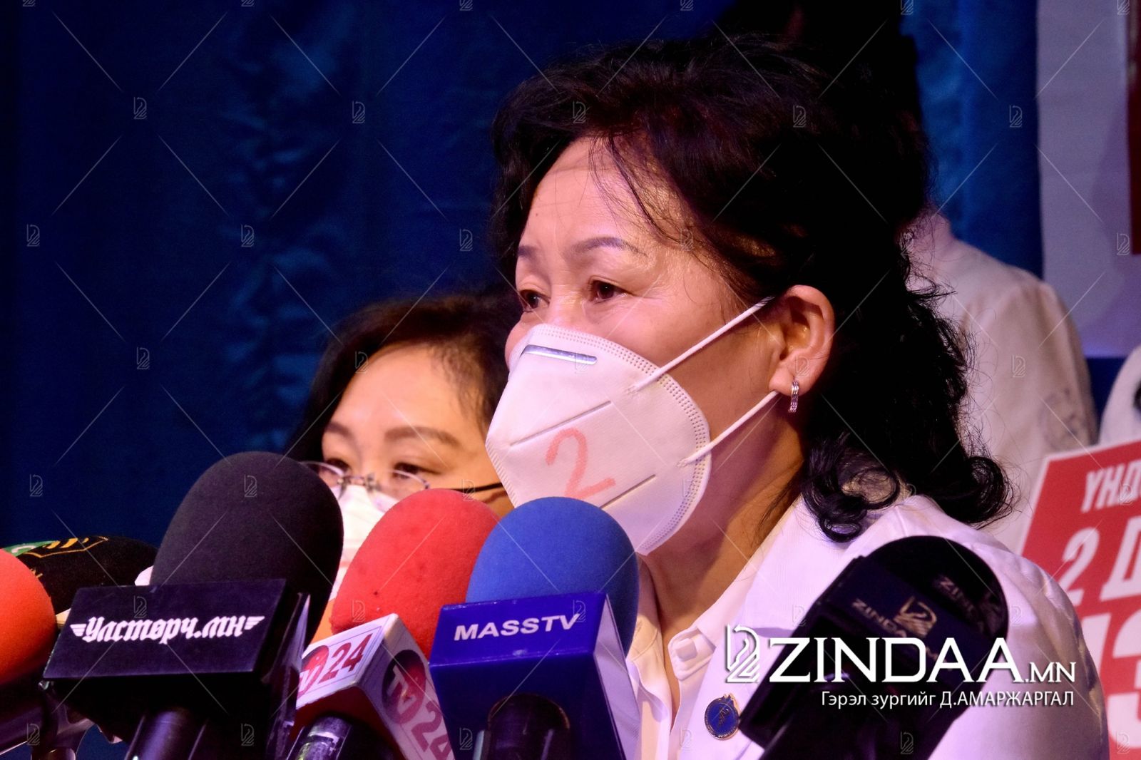 Хэвлэлийн хурлын төгсгөлд Монголын Эрүүл мэндийн ажилтны үйлдвэрчний эвлэлийн холбооны дарга Х.Ариунаа үг хэллээ.