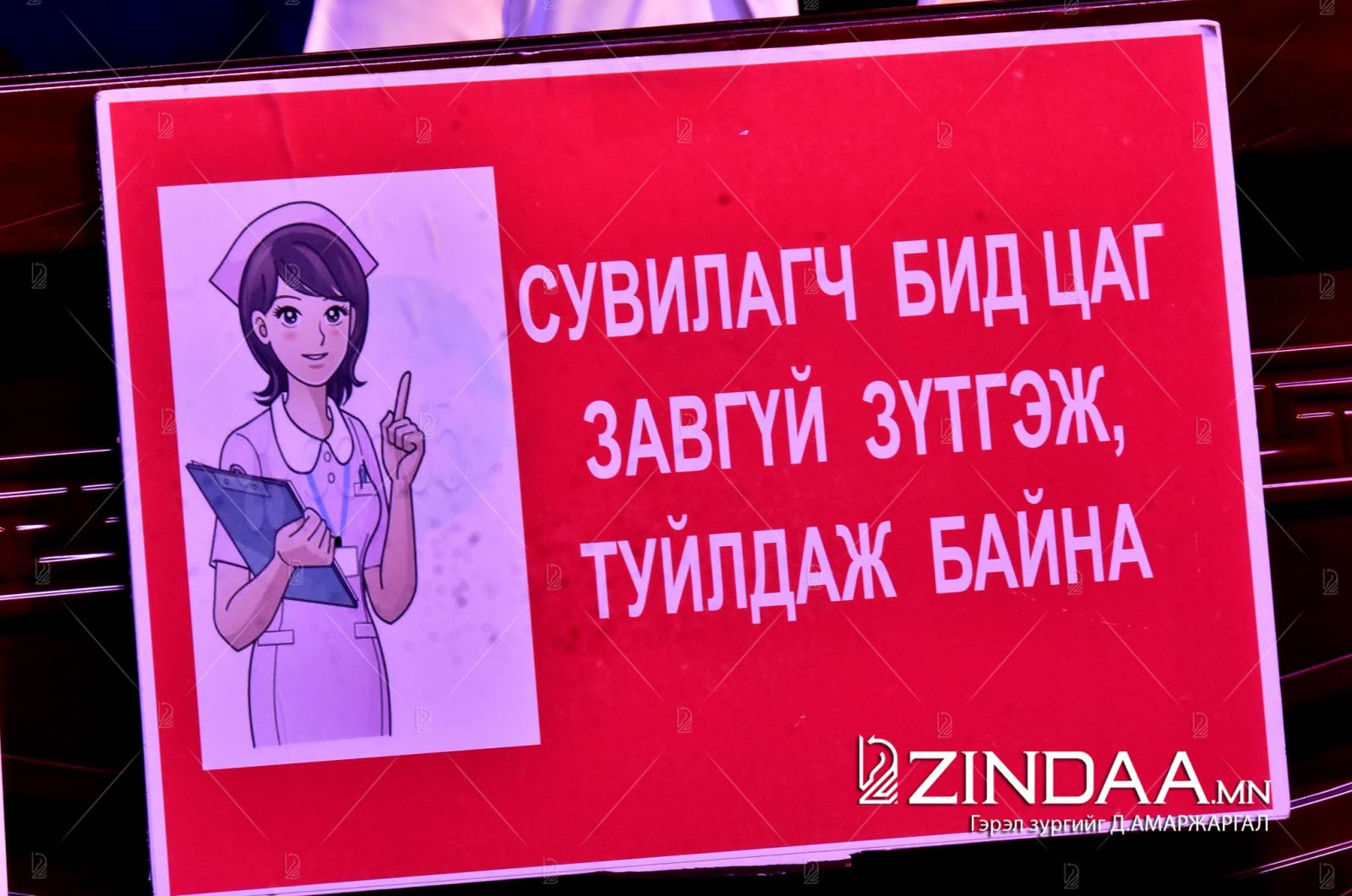 Баянзүрх дүүргийн “Эрүүл оршихуй” өрхийн эрүүл мэндийн төвийн сувилагч Ч.Пүрэвсүрэн “Сувилагч нараа төлөөлөн үгээ хэлье. Ковидын халдварын улмаас Онцгой байдал зарласан жил долоон сарын хугацаанд эмч, сувилагчдаас гадна эх баригч, лаборант, жолооч бүх хүн хүчээ шавхаж ажиллаад одоо сульдаж байна. Бид хүний нөөцийн хомсдолд орлоо. Ажлын хэт ачааллаас болж ажлаасаа маш их халширч эхэллээ. Салбараа орхимоор санагдах боллоо” хэмээн ярилаа.