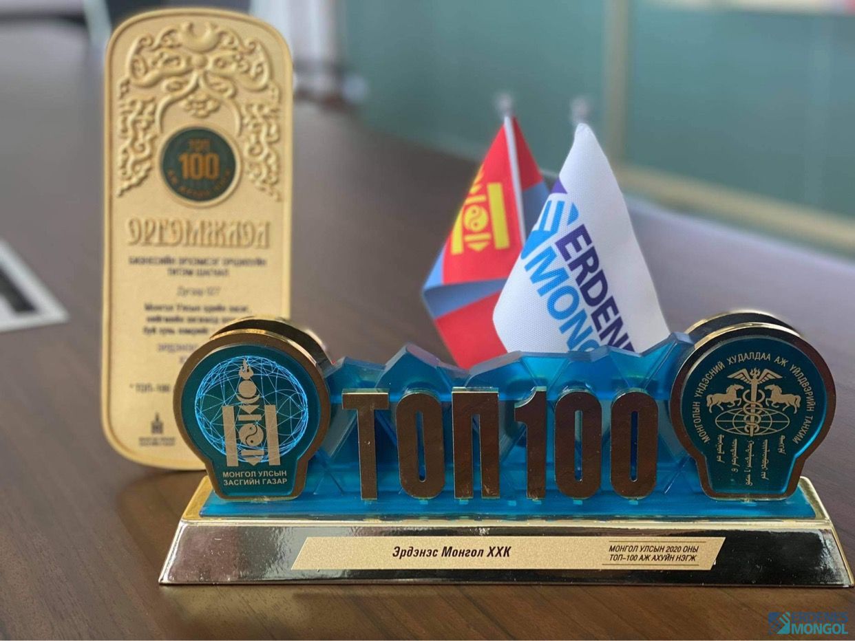 Монголын эдийн засгийг эрчимжүүлэхэд үнэтэй хувь нэмэр оруулсан шилдэг 100 аж ахуйн нэгжээр “Эрдэнэс Монгол” ХХК шалгарч 27 дугаар байрт эрэмбэлэгдлээ. Монголын шилдэг 100 аж ахуйн нэгжийг тодруулахдаа тухайн жилийн орлого, улсын төсөвт төвлөрүүлсэн татварын хэмжээ, нийгмийн даатгал төлсөн байдал, цар тахлын хүнд үед ажлын байраа хадгалж чадсан эсэх, компанийн хөрөнгийн хэмжээ зэрэг үндсэн үзүүлэлтийг харгалзан үзсэн байна. 2019 оны ТОП-100 ААН-ийн борлуулалтын орлогын хэмжээ өмнөх онтой харьцуулахад 3.4 их наядаар өсч, 34.3 их наяд хүрсэн нь ДНБ-ий 93 хувь, төлсөн татварын хэмжээ өмнөх жилээс 54 хувиар өсч, 6.3 их наяд төгрөгт хүрсэн нь татварын нийт орлогын 65 хувьд хүрсэн үзүүлэлттэй байна. Монгол Улсын Засгийн газар, Монголын худалдаа аж үйлдвэрийн танхим болон бусад Ажлын хэсгийн гишүүдийн зүгээс цар тахлын хүндхэн үед эдийн засагтаа үнэтэй хувь нэмэр оруулсан “Эрдэнэс Монгол” ХХК болон түүний охин компаниудад онцгойлон талархал илэрхийлсэн юм.