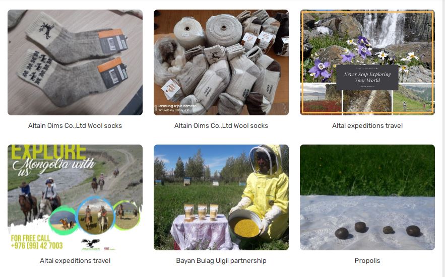 “Алтайн оймс” компани орон нутагт угааж, самнасан ноосоор бүтээгдэхүүнээ хийдэг. Жилдээ 50-100 мянган хос оймс хийх боломжтой. “Баян Булаг Өлгий” нөхөрлөл нь цэвэр зөгийн бал, зөгийн лав, цэцгийн тоос зэргийг үйлдвэрлэдэг. “Kenjedara” компани мах махан бүтээгдэхүүн үйлдвэрлэдэг. Өнгөрсөн жилээс лаазалсан болон хатаасан загасан бүтээгдэхүүн үйлдвэрлэж байгаа. “Golden eagle tour”, "Бест Алтай” компаниуд бол аялал жуулчлалын томоохон компаниуд. Олон төрлийн аялалыг жуулчдад санал болгодог. Эдгээр компаниуд Японы бизнесүүдтэй хамтран ажиллах, бүтээгдэхүүн, үйлчилгээгээ хүргэхэд нээлттэй байгаа гэлээ.