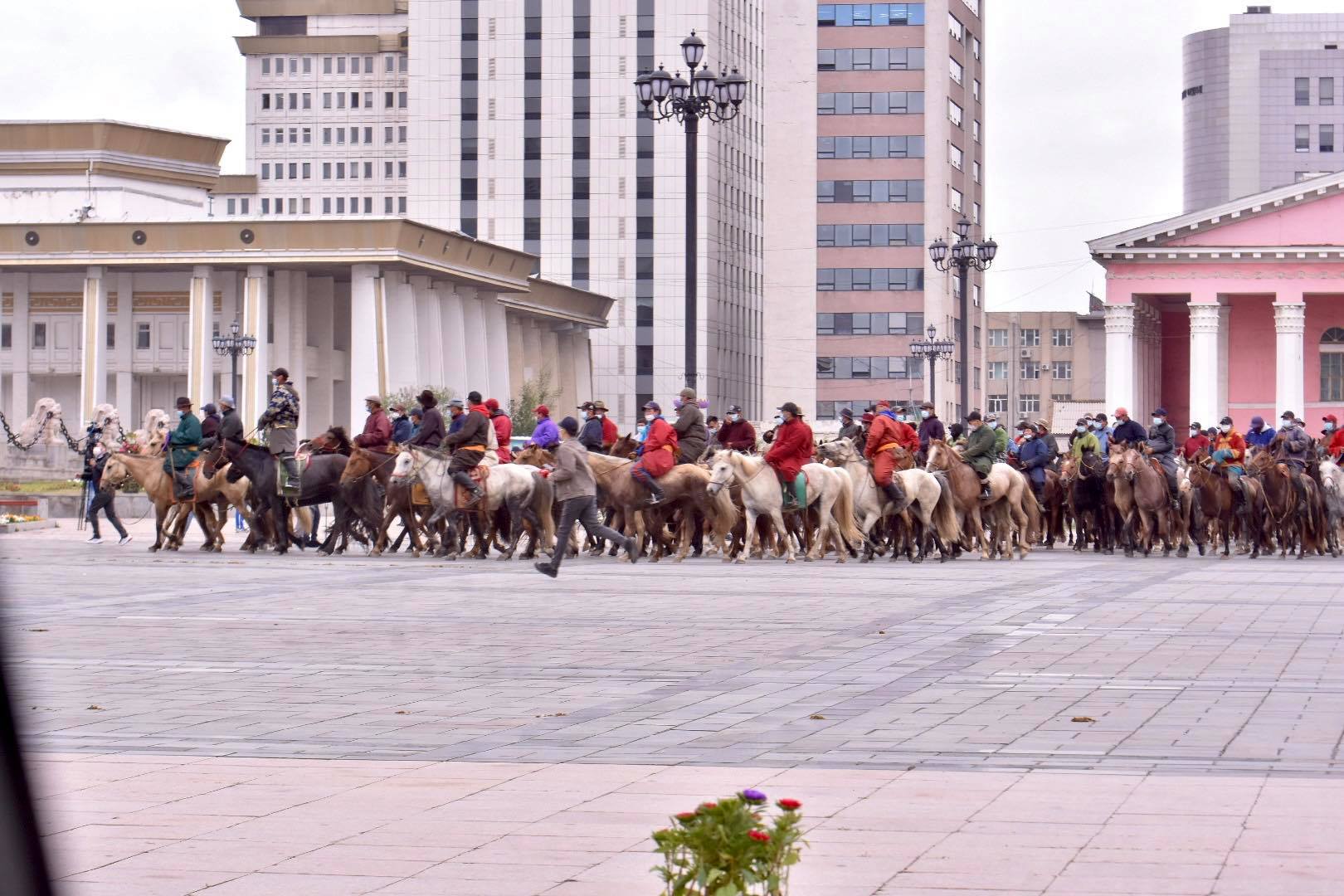 Өчигдөр мөн Төв талбайд иргэд цуглаж, наадам тэмдэглэхийг эсэргүүцэн жагссан.
