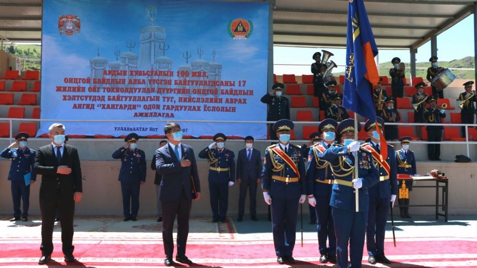 Хангарди одонг өнөөдөр /2021.07.07/ Нийслэлийн иргэдийн төлөөлөгчдийн хурлын дарга Ж.Батбаясгалан тус ангийн дайчин туганд зүүж өглөө.