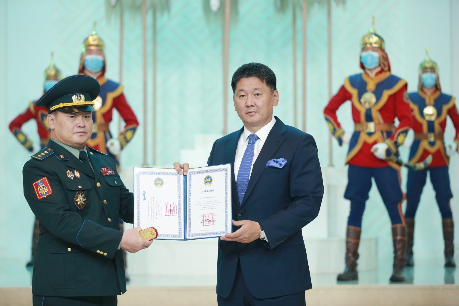 Монгол Улсын Үндсэн хуулийн 33 дугаар зүйлийн 1 дэх хэсэгийн 7 дахь заалт, 34 дүгээр зүйлийн 1, Монгол Улсын Ерөнхийлөгчийн тухай хуулийн 9 дүгээр зүйлийн 1, 15 дугаар зүйлийн 1 дэх хэсэг, Монгол Улсын Ерөнхийлөгчийн 2021 оны 02 дугаар сарын 03-ны өдрийн 07, 2021 оны 03 дугаар сарын 15-ны өдрийн 37 дугаар зарлигийг тус тус үндэслэн Монгол Улсын Ерөнхийлөгч, Зэвсэгт хүчний ерөнхий командлагч Ухнаагийн Хүрэлсүх “Цэргийн дээд цол олгох тухай” зарлиг гаргав.