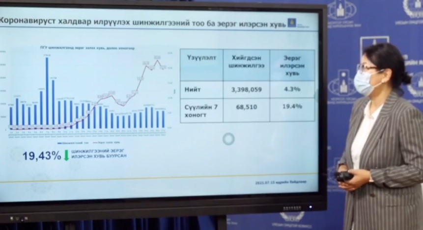 ХӨСҮТ-ийн дэд захирал Ж.Байгалмаа: Он гарснаас хойш Монгол Улсад Ковид-19 халдварын хоёр давалгаа явагдсан. Зургаадугаар сард эхэлсэн давалгааны оргил үе мөн сарын 20-оор ажиглагдсан. Одоо эргээд буурч байгаа дүр зураг харагдаж байна.