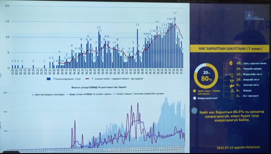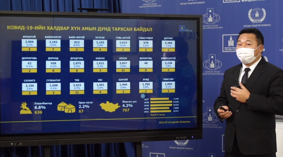 Дэлхий дээр 190 сая орчим хүн ковидоор өвчилж, дөрвөн сая гаруй хүн нас барчихаад байна. Монгол Улсын хувьд нийт тохиолдолтойгоо харьцуулж үзэхэд 0.50 хувьтай байна. Дэлхийд 2.15 хувь байна.