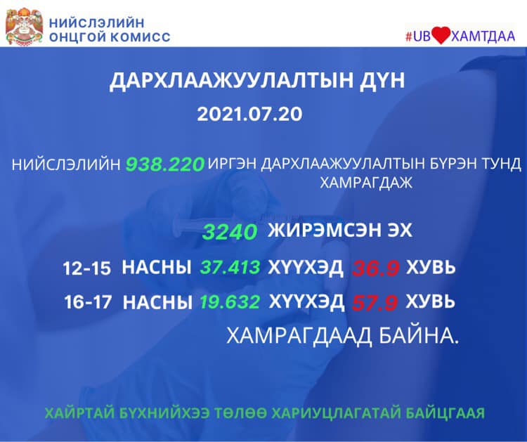 2021 оны долдугаар сарын 19-ний өдрийн байдлаар улсын хэмжээнд нийт хүн амын 64.8 хувь нь нэгдүгээр тунд, 56.6 хувь нь хоёрдугаар тундаа хамрагдаад байгаа юм.