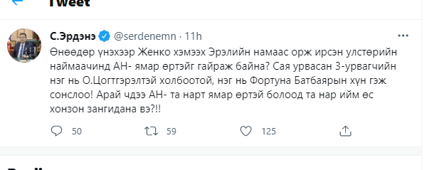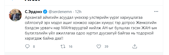 Үүнтэй холбогдуулан УИХ-ын гишүүн асан, АН-ын дарга С.Эрдэнэ өөрийн цахим хуудаснаа байр сууриа илэрхийлжээ.