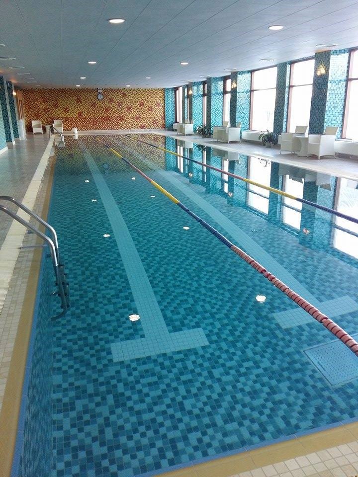 Бассейны хэмжээ: урт 18м, Гүн 1.8м. 3 замтай. Мөн хүүхдэд зориулсан жижиг бассейнтай.