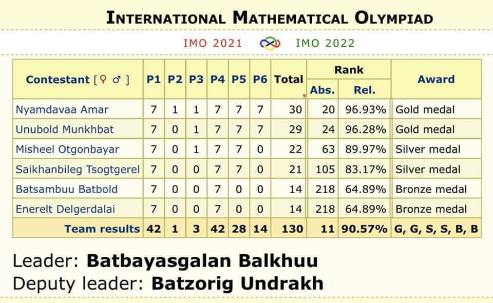 Олимпын наадмын нээлт болж байгаа яг энэ цаг мөчид олон улсын математикийн олимпиадад оролцож байгаа манай сурагчдын баг гайхалтай амжилт гаргасан мэдээг хүлээн авлаа.
