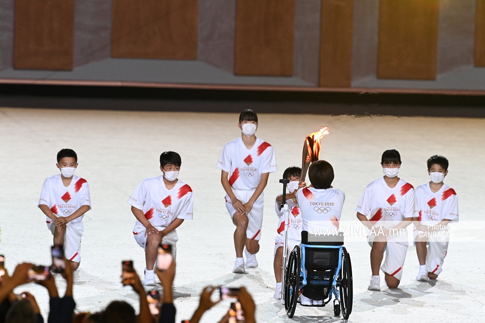 "Их дуулга" тэмцээнд дөрвөнтөө түрүүлээд буй тэрбээр шатаар өгсөн гарч, бамбарыг тун даруухнаар асааснаар Токиогийн олимп албан ёсоор хөшгөө нээлээ.