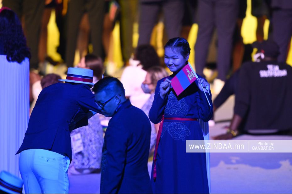Монголын баг 27 хүний бүрэлдэхүүнтэйгээр нээлтийн ёслолд жагсав. “Мишел Амазонка”-гийн урласан манай тамирчдын хувцас үнэхээр өнгөлөг, загварлаг харагдаж байлаа. Мөн анх удаа эмэгтэй тамирчин Монголын багийн тугийг залсан нь нээлтийн гол онцлогийн нэг байв.