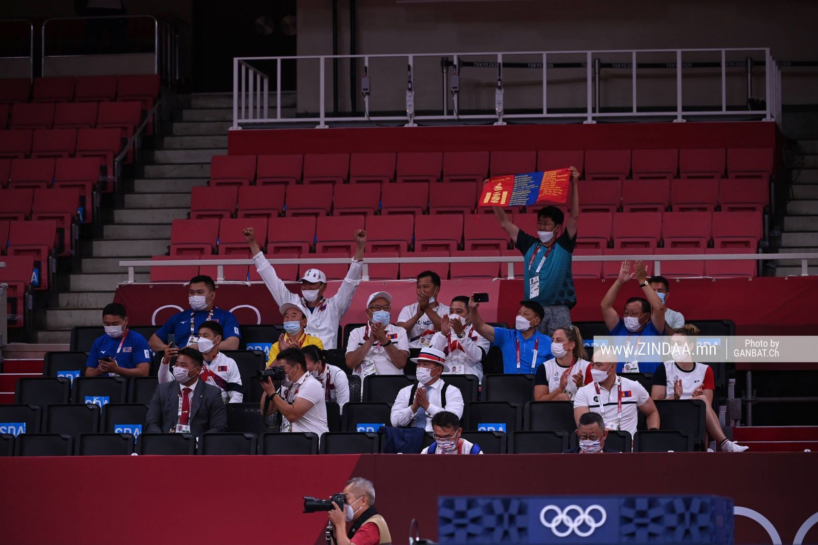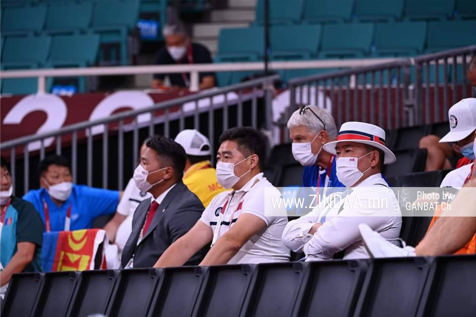 Монгол Улсын Ерөнхий сайд Л.Оюун-Эрдэнэ, Монгол Улсын Ерөнхийлөгч асан, Монголын жүдо бөхийн холбооны ерөнхийлөгч Х.Баттулга нар Токиогийн олимпыг үзэн, үзэгчдийн суудлаас тамирчдаа дэмжиж байна.
