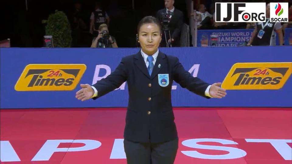 "Токио-2020" олимпын жүдо бөхийн тэмцээнийг Монголын шүүгч Төрбатын Энхцэцэг шүүж байна.
