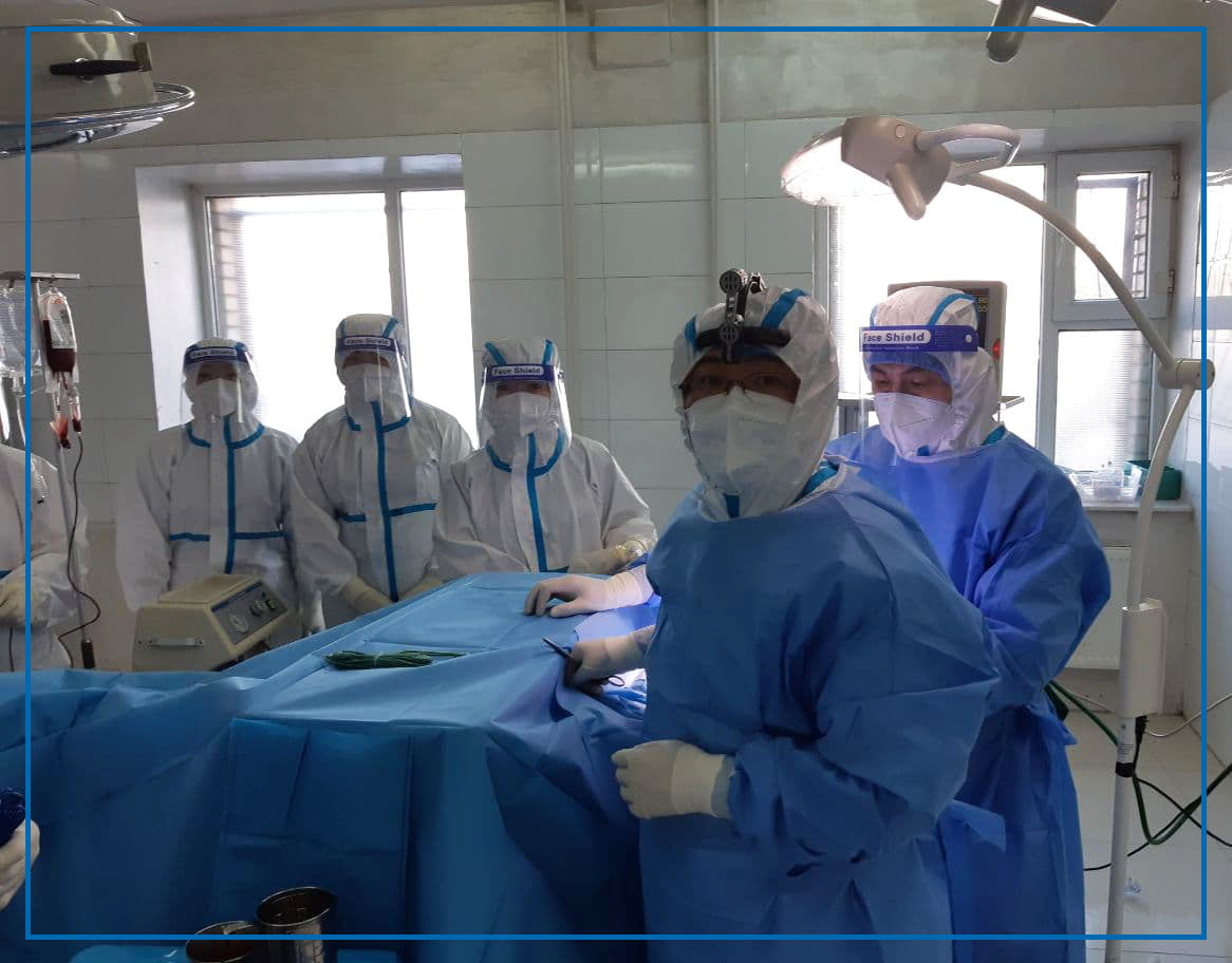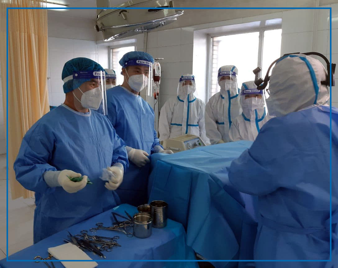 Хүнд өвчтэй иргэнд мэс заслын тусламж үйлчилгээг тархины мэс заслын тасгийн их эмч, мэдрэлийн мэс засалч Э.Энхтүвшин, Ц.Эрдэнэ, мөн ковидын тасагт ажиллаж байгаа 7 дугаар багийн их эмч А.Амгаасэд, мэдээгүйжүүлгийн эмч Н.Оюунчимэг, сувилагч н.Адъяасүрэн, н.Мөнхтулга нар хамтран үзүүлжээ.