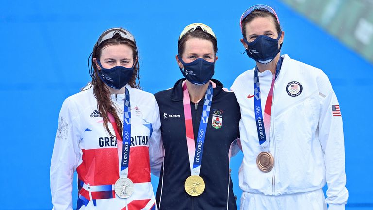 Усанд сэлэлт /1.5 км/, дугуйн уралдаан /40 км/, гүйлт /10 км/-ээс бүрдсэн триатлон өнөөдөр борооны улмаас товлосон цагаас 15 минут хоцорч эхэлсэн. Флора Даффи нэг цаг 55.36 минутын амжилттай ялсан бол Их Британийн Жоржиа Тейлор Браун /+1.14/ мөнгөн медаль, АНУ-ын тамирчин Кэти Заферес /+1.27/ хүрэл хүртлээ.