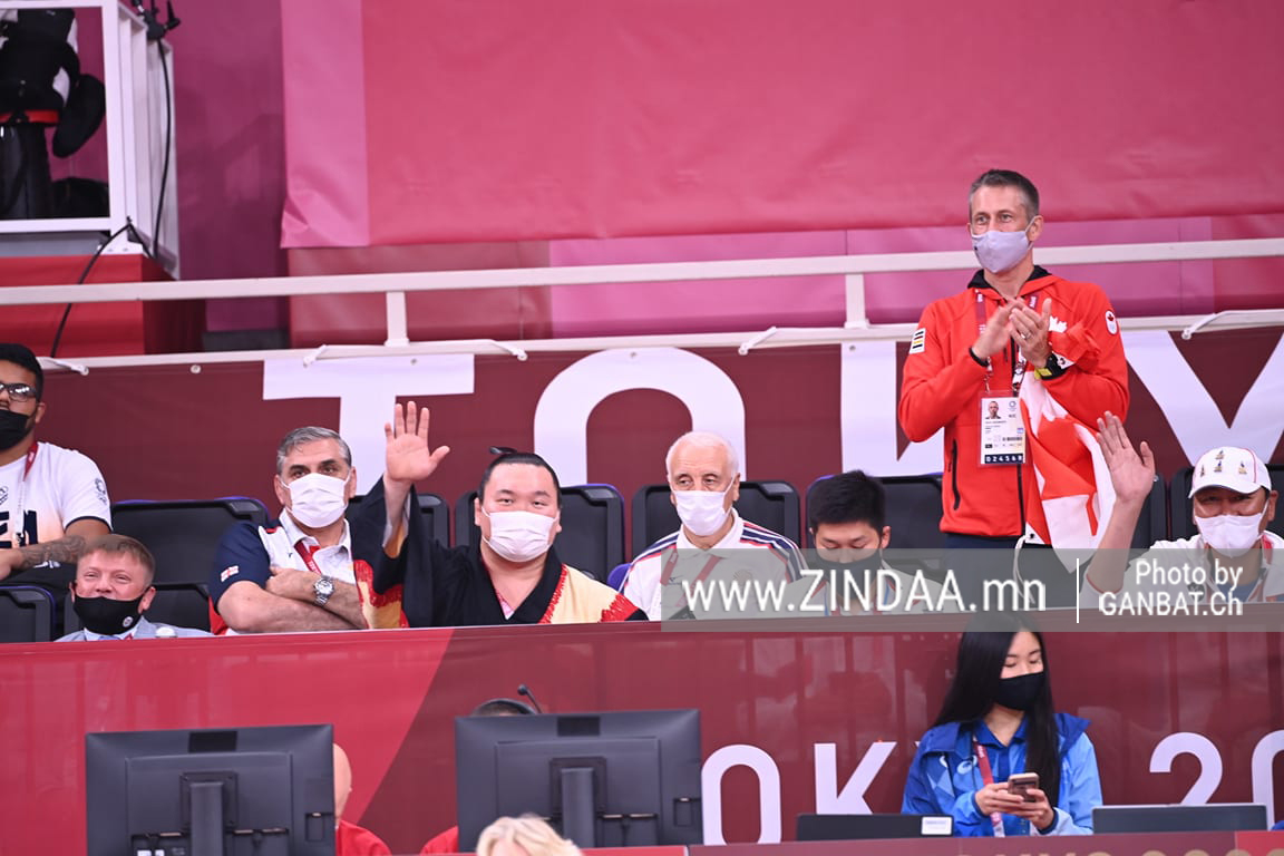 Мэргэжлийн сүмогийн их аварга Хакүхо жүдо бөхийн эрэгтэйчүүдийн 81 кг-ийн жингийн барилдааныг үзэж, Монголын бөх Саид Моллаиг дэмжихээр Бүдокан ордонд хүрэлцэн ирлээ.