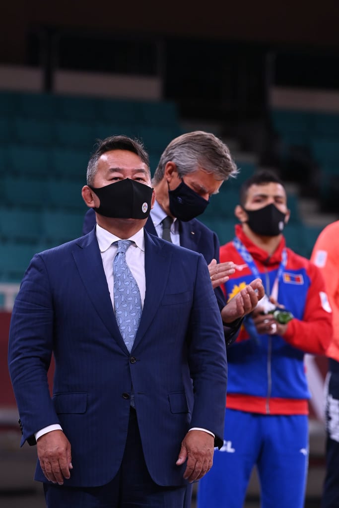 Монгол Улсын Ерөнхийлөгч асан, Монголын жүдо бөхийн холбооны ерөнхийлөгч Х.Баттулга Олон улсын жүдо бөхийн холбооны элчийн хувиар Токиогийн олимпын жүдо бөхийн 81 кг-ийн жингийн медальтнуудад шагнал гардуулсан билээ.
