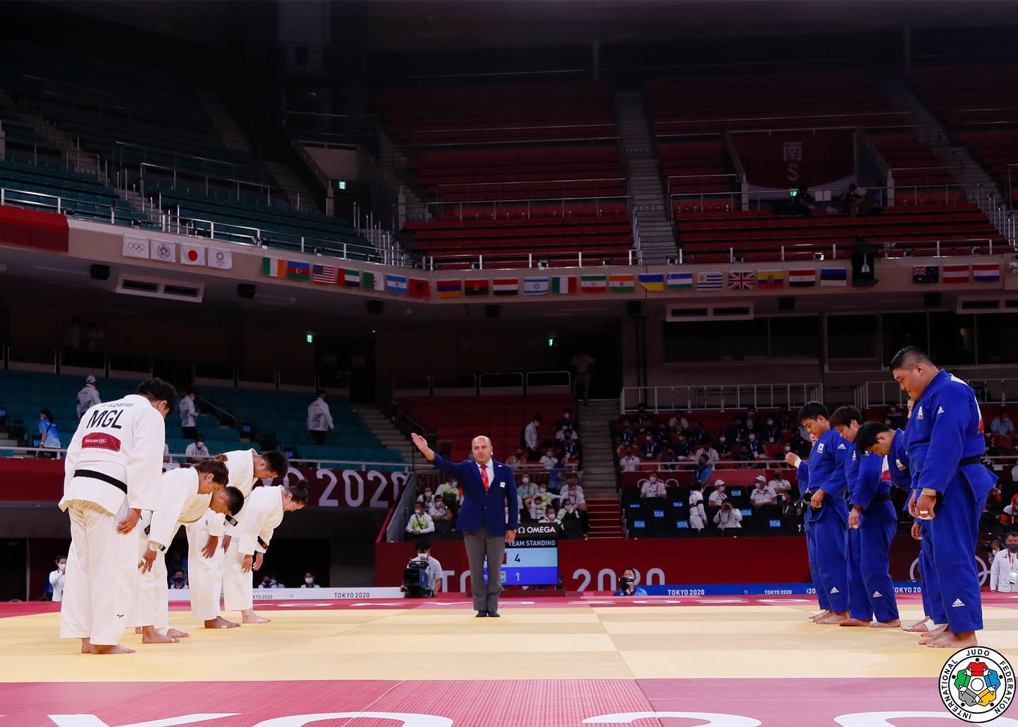 Жүдо бөхийн холимог багийн тэмцээн өнөөдөр эхэллээ. Манайхан эхний шатанд БНСУ-ын багтай таарч барилдлаа.