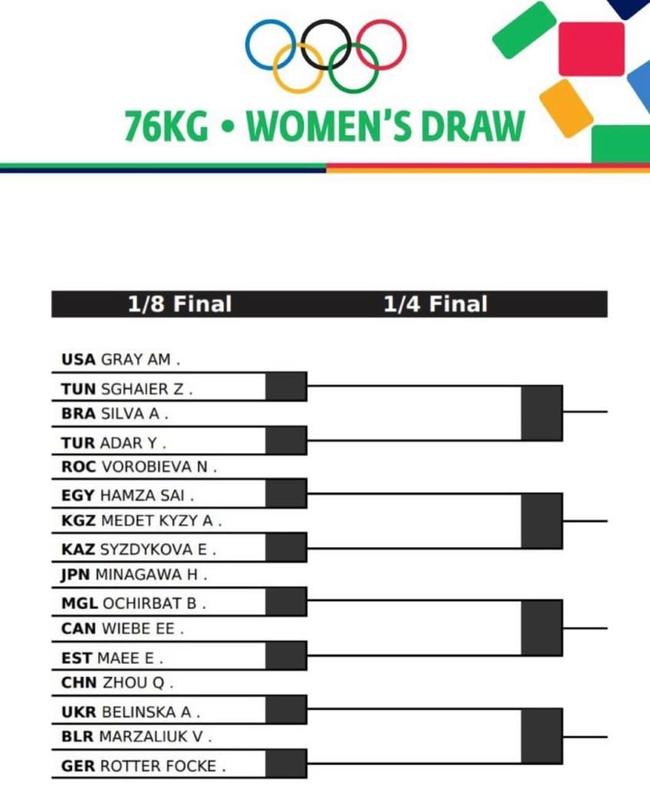 Наталья Воробьева эхлээд Африкийн аварга Самар Хамзатай таарсан. Энэ хэсэгт 2020 оны Азийн АШТ-ий мөнгөн медальт Киргизийн Айпери Медет Кызы, 2021 оны Азийн аварга Казахстаны Эльмира Сыздыкова байна. Шалгарсантай нь хагас шигшээд АНУ-ын Аделин Грей, 2018 оны дэлхийн аварга Туркийн Ясмин Адар нарын нэг тулах болов уу.