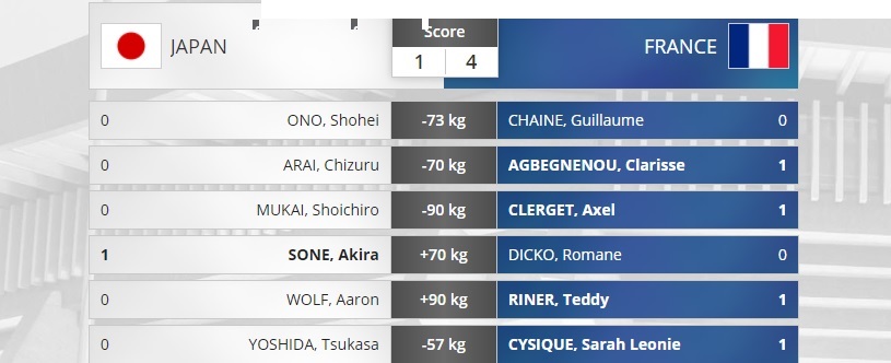 Бүтэн долоо хоногийн турш ямар ч алдаагүй ялж байсан Японы баг гараан дээрээ Абэ Үта, Оно Шёохэй нар ялагдаж, Германы багт ялагдах шахсан. Талбайн эзэд хэдийгээр финал хүртэл явсан ч Францын шигшээд 1:4 ялагдлаа.