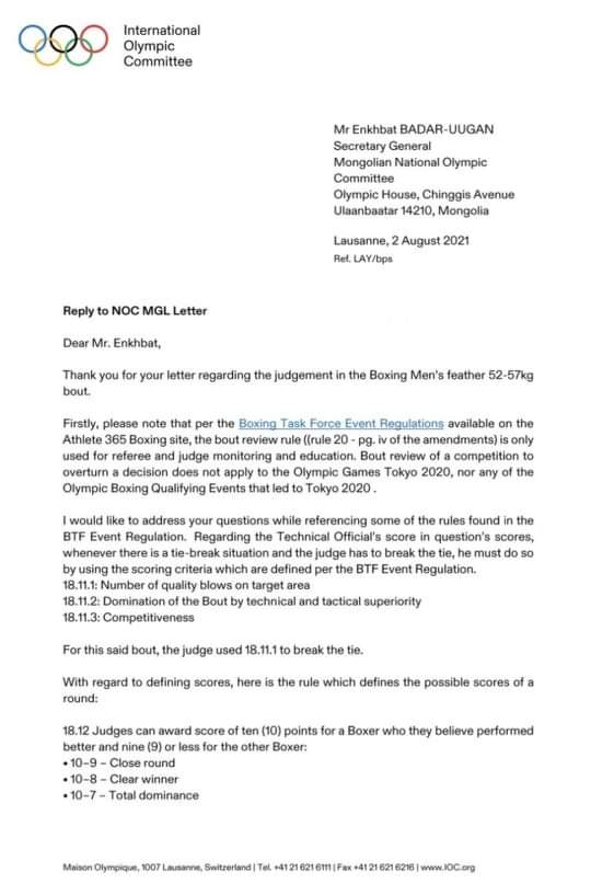 Түүнийг ОХУ-ын боксчинд ялагдсаны дараа манай шигшээ баг албан ёсны эсэргүүцэл илэрхийлсэн билээ.