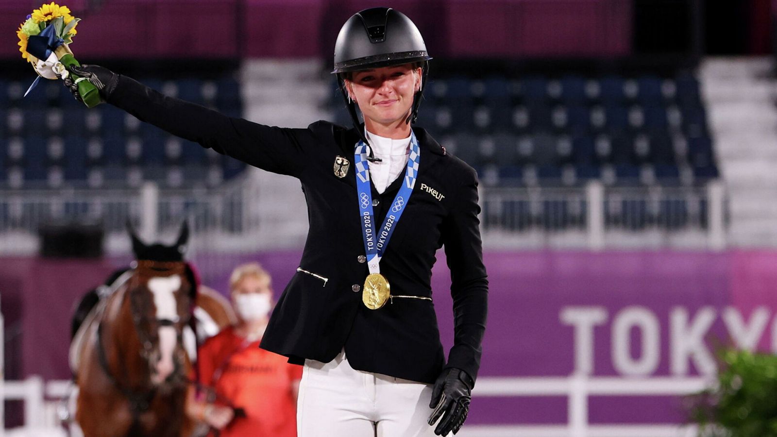 Токио-2020 олимпын морин спортын ганцаарчилсан гурван төрөлтийн тэмцээнд Германы унаач Юлиа Краевски түрүүлжээ.