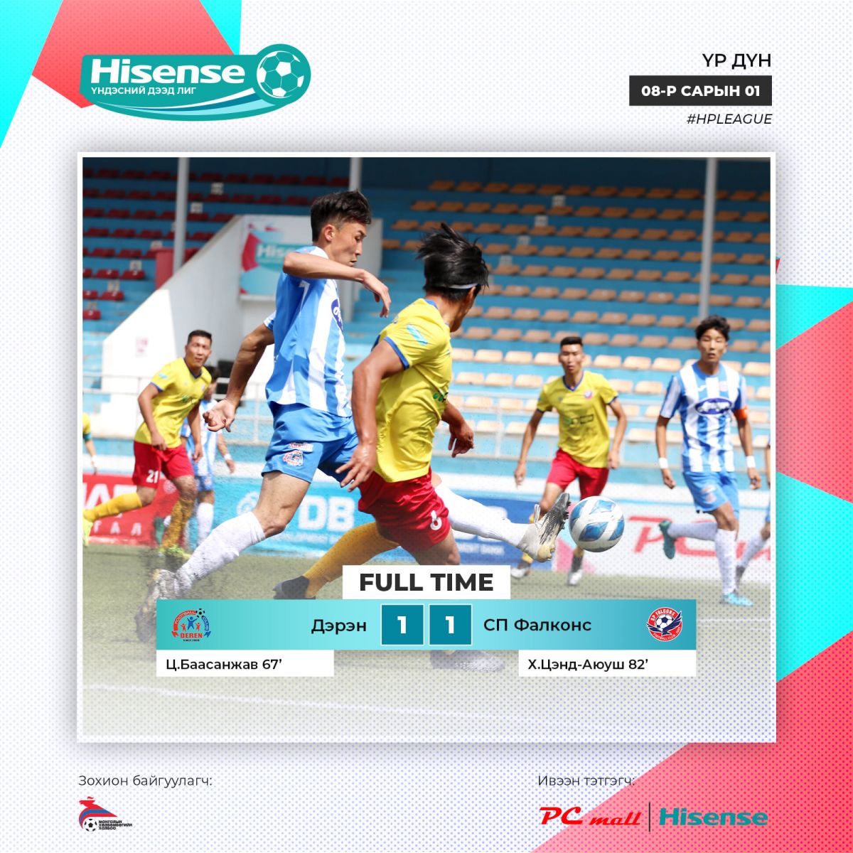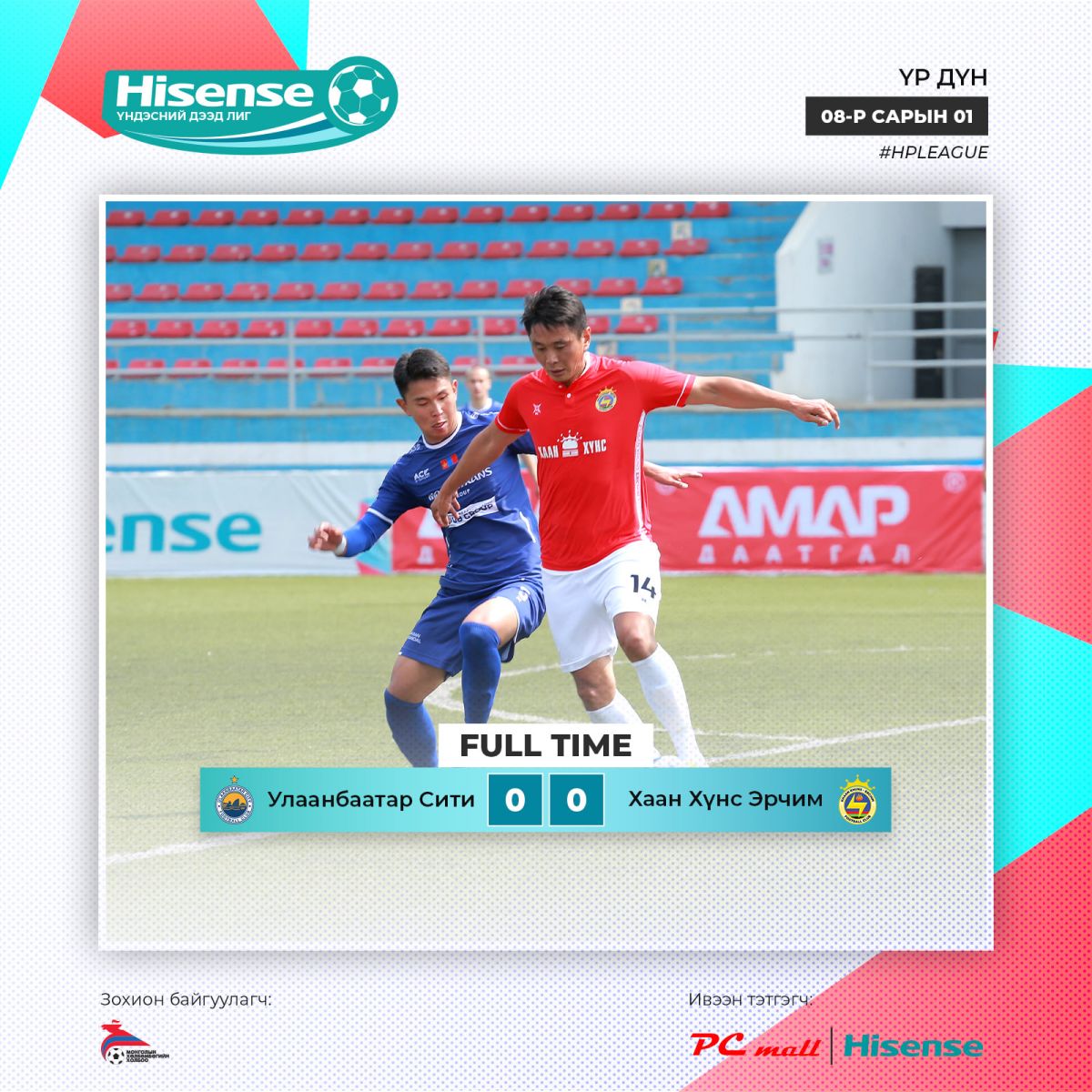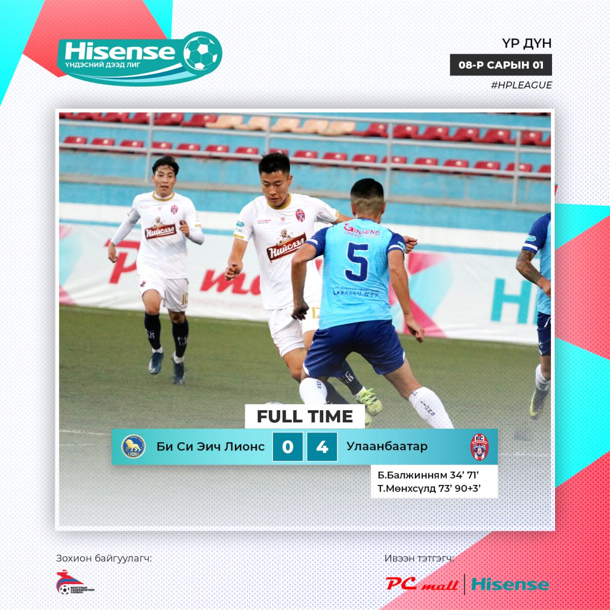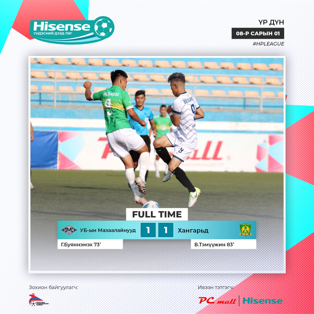 Монголын хөлбөмбөг сонирхогчид, тоглогчид, дасгалжуулагчид, энэ спортод зүрх сэтгэлээ зориулсан хүн бүрийн хүлээлт эцэс болж, наймдугаар сарын 1-нд “Hisense” үндэсний дээд лиг эхэлж, эхний тойрог амжилттай өндөрлөлөө.