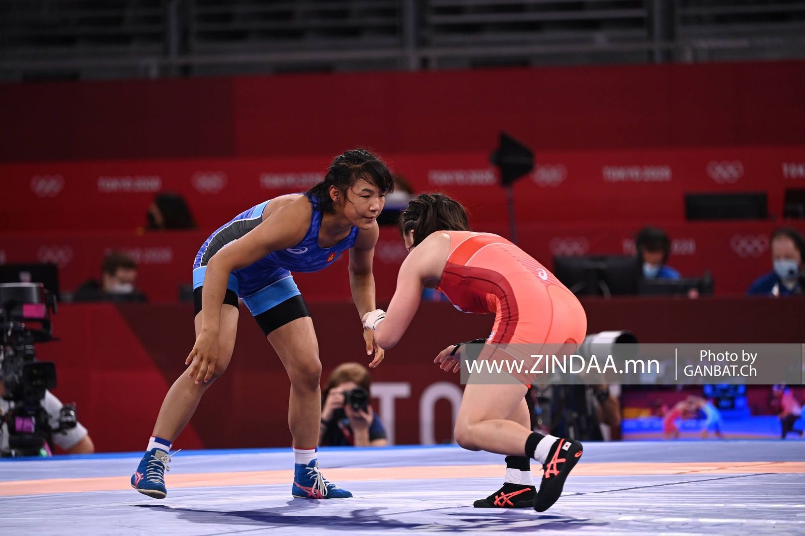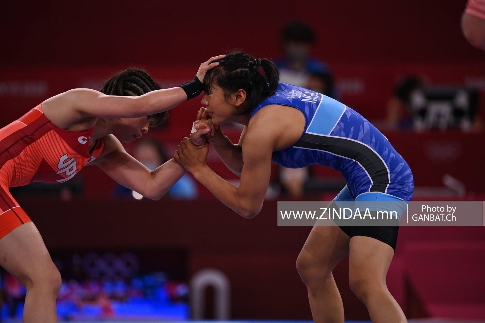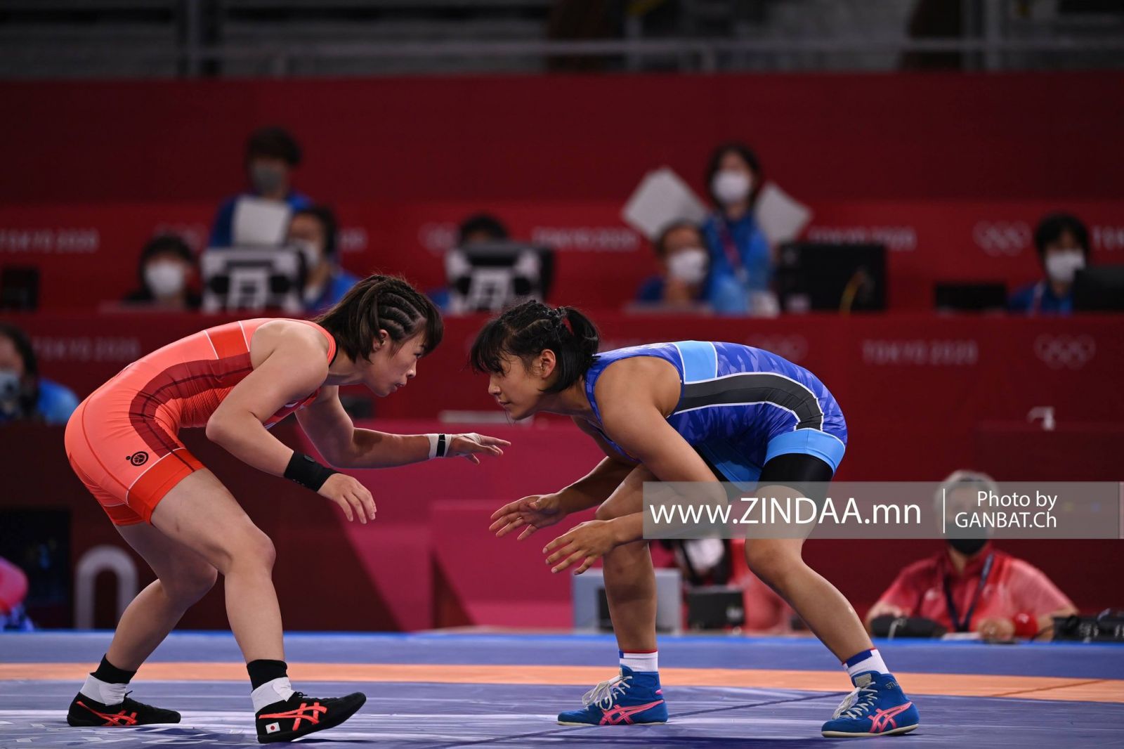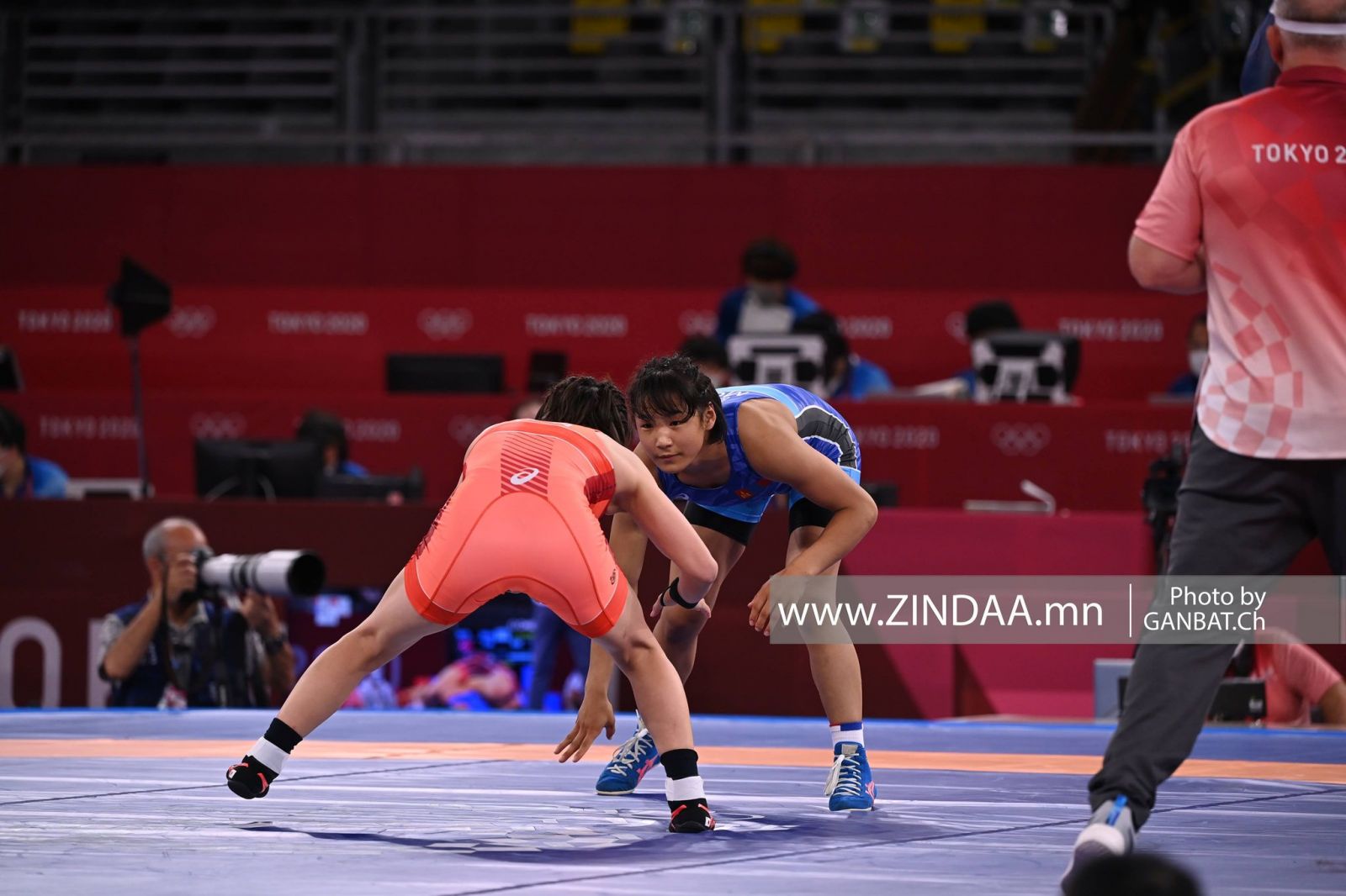 Дараагийн тойрогт 2016 оны олимпын аварга, дэлхийн 3 удаагийн аварга, Азийн 4 удаагийн аварга Японы Рисако Каваитай барилдлаа. Каваи эхний тойрогт Гвинейн CAMARA Fatoumata Yarie-г ялсан.