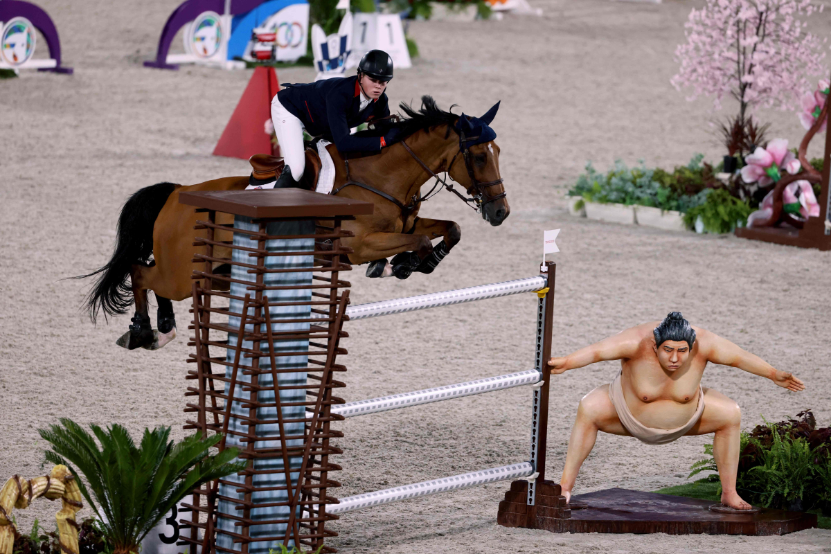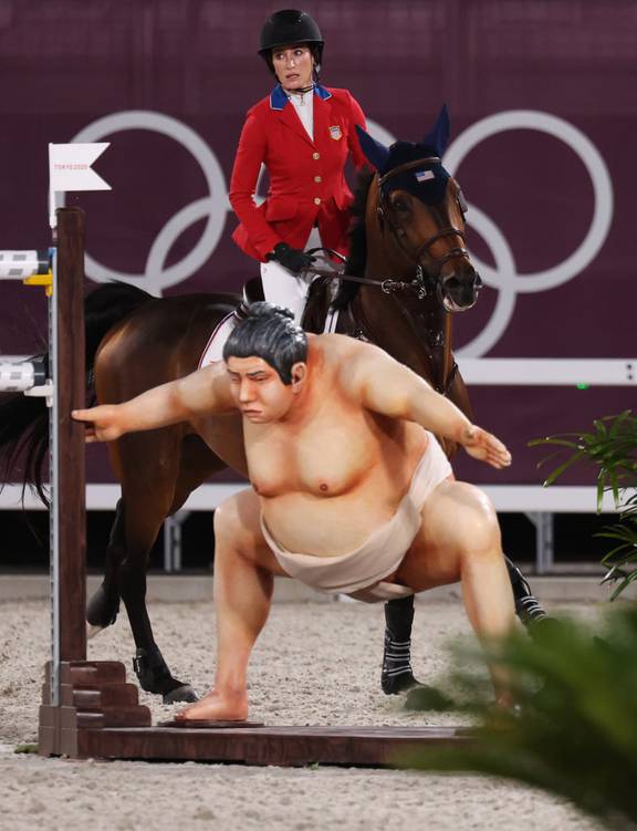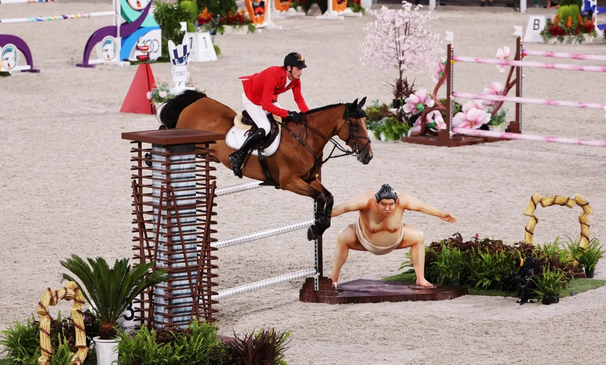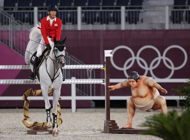 Морин спортын тэмцээний дэвжээнд япончууд жижиг ордон, гейша, бөмбөр гээд төрөл бүрийн гоёмсог саад байгуулжээ. Гэхдээ тэдний дундаас сүмочийн баримал нүдэнд онцгой тусаж байгаа аж. Энэ баримлаас болж зарим тамирчид шаардлагатай оноо авч чадаагүй байж магадгүй гэж тус агентлаг онцолжээ.