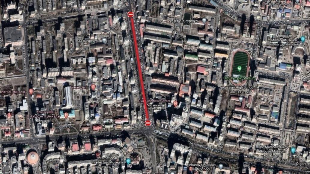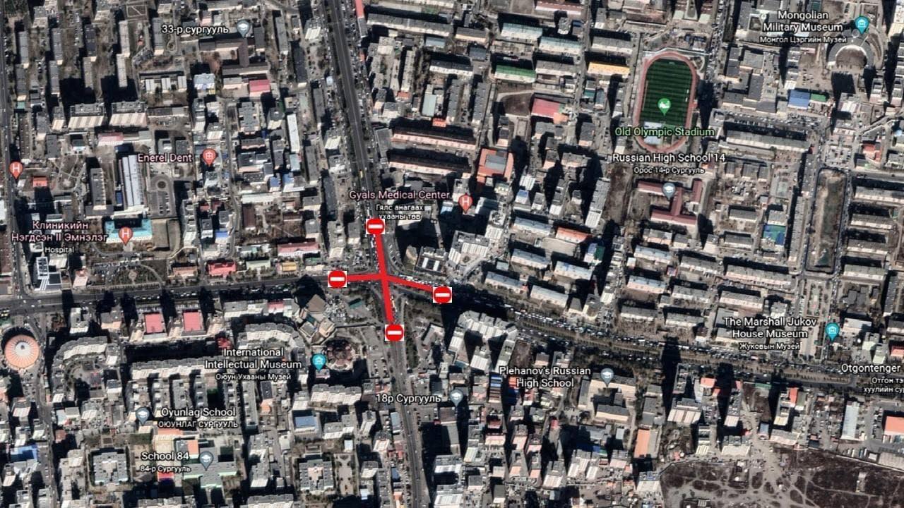 Наймдугаар сарын 10-ны 23:00 цагаас наймдугаар сарын 12-ны 23:00 цаг хүртэл Зүүн дөрвөн замын уулзвараас урагш Намьянжугийн гудамжны "Петровис" шатахуун түгээх станцын уулзвар хүртэл