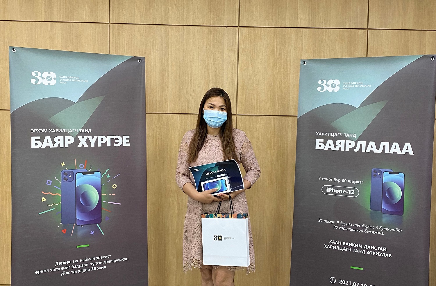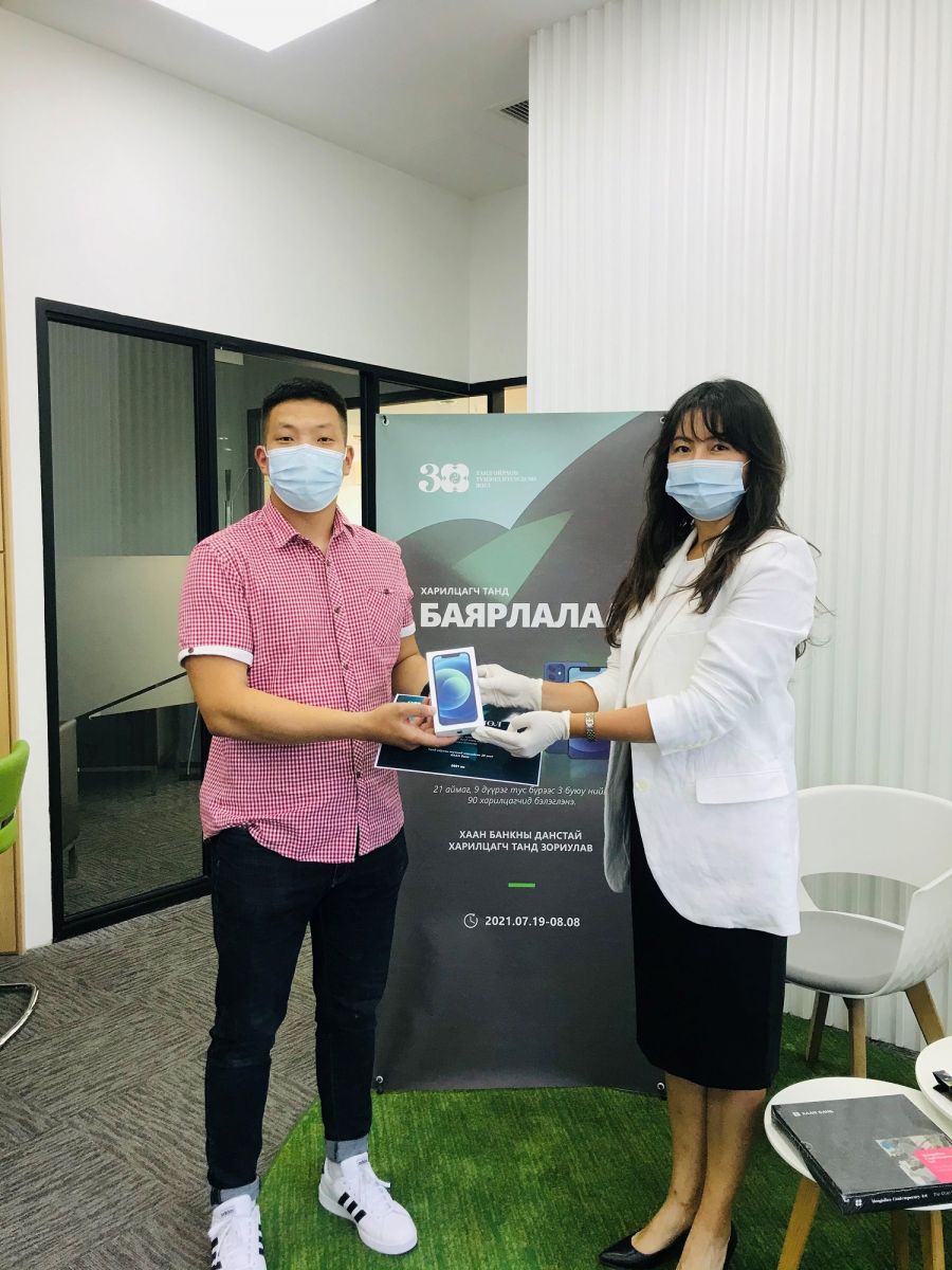 ХААН Банкны талархлын бэлэг iPhone-12 гар утас бэлгэнд авсан харилцагчид