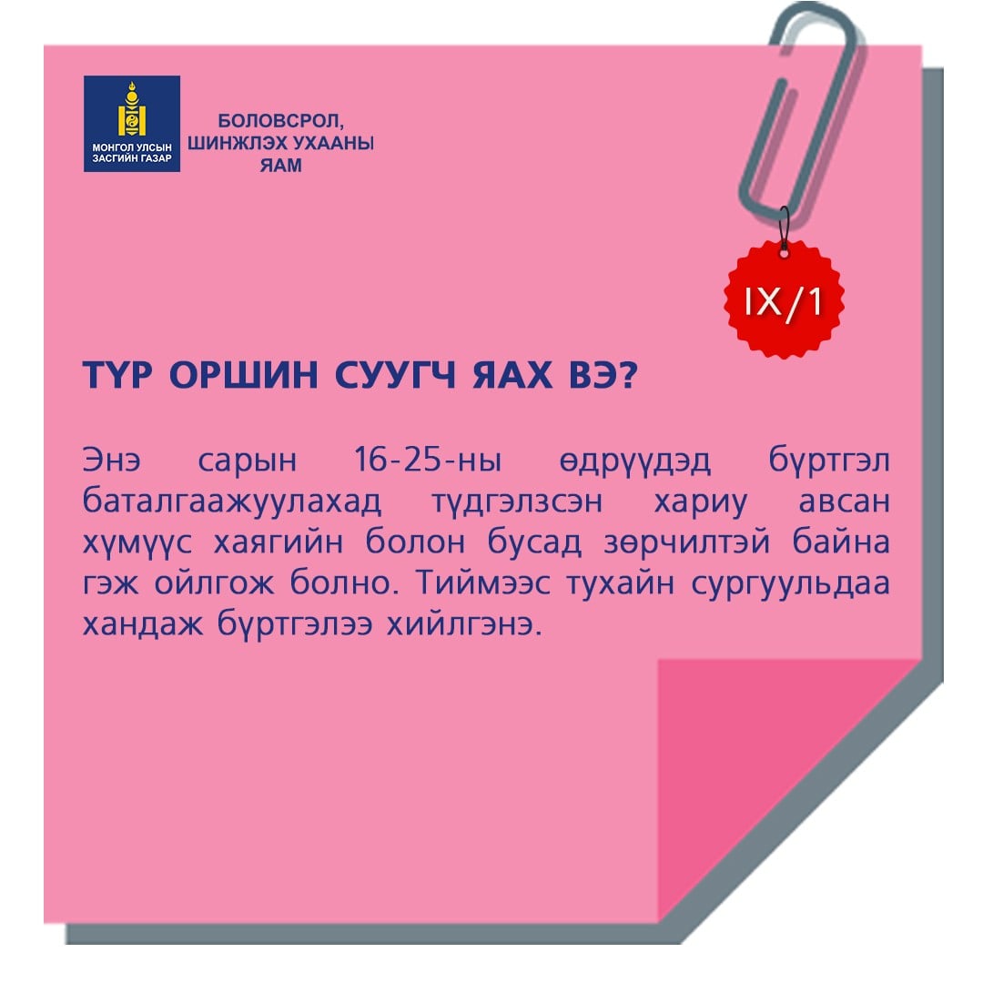 • Таны хүүхэд аль сургуулийн, аль бүлэгт, хэн багшийн ангид хуваарилагдсан талаарх мэдээлэл таны гар утсанд ирэх болно.
