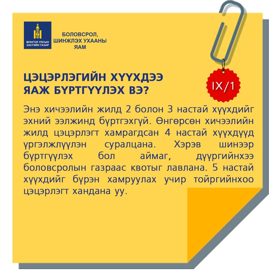Нэгдүгээр ангийн сурагчдын цахим элсэлтийн талаар эцэг эх, асран хамгаалагчид асуулт ирүүлсээр байгаа учир БШУ-ны яамнаас дараах тайлбарыг хүргэж байна.