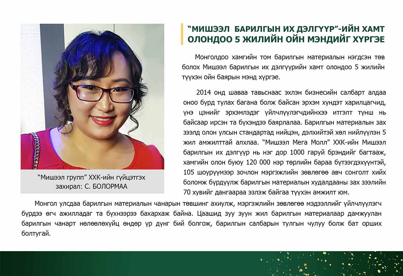 "Мишээл барилгын их дэлгүүр"-ийн хамт олондоо 5 жилийн ойн мэнд хүргэе