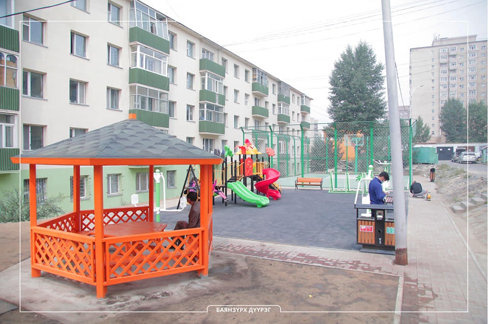 Баянзүрх дүүргийн 1 дүгээр хороо 18 дугаар байрны урд талд хийгдэж буй хүүхдийн тоглоомын талбайн тохижилтын ажлын гүйцэтгэл 99 хувьтай үргэлжилж байна. Өмнө нь авто зогсоол хэлбэрээр ашиглагдаж байсан газрыг тохижуулж, иргэд амарч зугаалах боломжтой орчныг бий болгожээ.