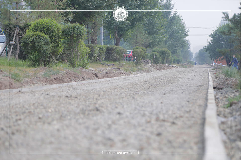 Хийж гүйцэтгэсэн ажлын хувьд тохиромжгүй хөрс хуулсан, хог хаягдлыг ачиж, хуучин явган замын хавтанг өмчлөгч талд нь шилжүүлэн, далангийн индүүгээр суурь хөрс хүчитгэж замын 1 дүгээр үе дайрган суурийг хийж, хучилтын ажлыг эхлүүлээд байна.