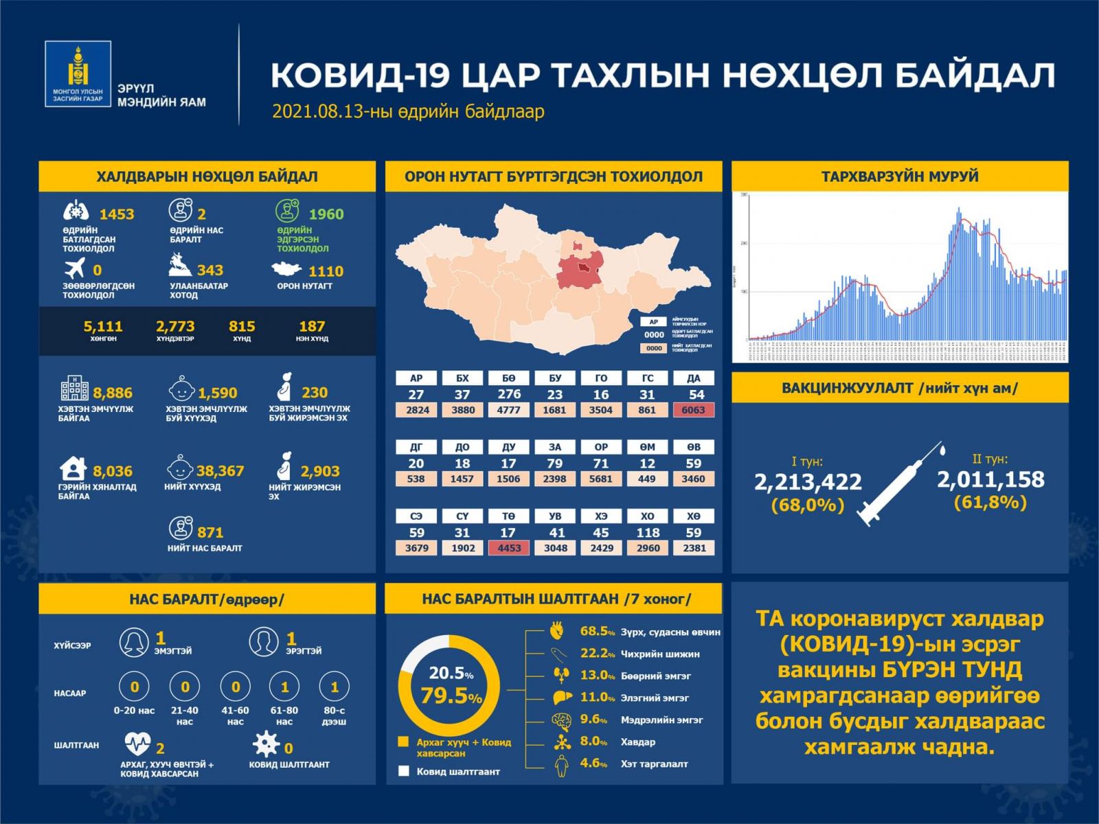 УУЛ ТАХИАД ДАНШИГ НААДАМ ХИЙГЭЭД БАЙХААР ЧИНЬ ӨВЧИН НЭМЭГДЭНЭ ШДЭЭ. ЯАСАН ХАШИРДАГГҮЙ ЮМ. СОНГУУЛЬ, ОДОН МЕДАЛИАР ОЛОН ХҮН ӨВДӨЖ ҮРЭГДЭЭД БАЙХАД. ТӨР НЬ ХҮН АРДДАА ҮЛГЭР ДУУРИАЛАЛ ҮЗҮҮЛЭХГҮЙ БОЛ ХӨСҮТ ГАНЦААРАА ЭНЭ БҮГДЭД ЧИНЬ ГАНЦААР ГАСЛААД НЭМЭРГҮЙ. СУРГУУЛЬ СОЁЛ ЭХЛЭНэ ГЭЭД БАЙХ ЮМ. ЯВДАГ ХҮҮХДҮҮД НЬ ЯВААД ӨВДӨХ ДРТАЙ НЬ ӨВДДӨГ ЮМ БАЙГАА БИЗ. ВАКЦИНГҮЙ , МАСКАА Ч ЗҮҮЖ ЧАДАХГҮЙ БАГА НАСНЫ ХҮҮХДҮҮД ӨВДӨӨД ЭХЭЛВЭЛ ЯАХ БОЛЖ БАЙНА.