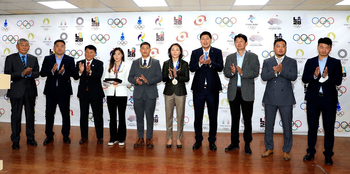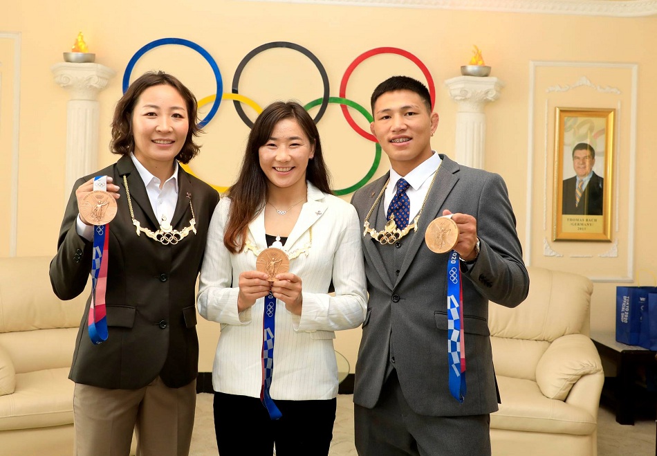 Мөн "Токио-2020" зуны олимпын наадамд оролцож, онцгой гавьяа байгуулсан медальт тамирчдыг МҮОХ-ны Гүйцэтгэх зөвлөлийн шийдвэрээр МҮОХ-ны дээд шагнал “Алтан од” одонгоор шагнасныг гардуулан өглөө.