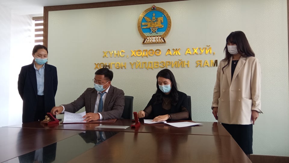 Засгийн газрын хэрэгжүүлэгч агентлаг, Жижиг дунд үйлдвэрийн газрын дарга Я.Эрдэнэсайхан, Alibaba JDT институцийн Гүйцэтгэх захирал С.Ундармаа нар хамтран ажиллах Санамж бичигт гарын үсэг зурлаа.