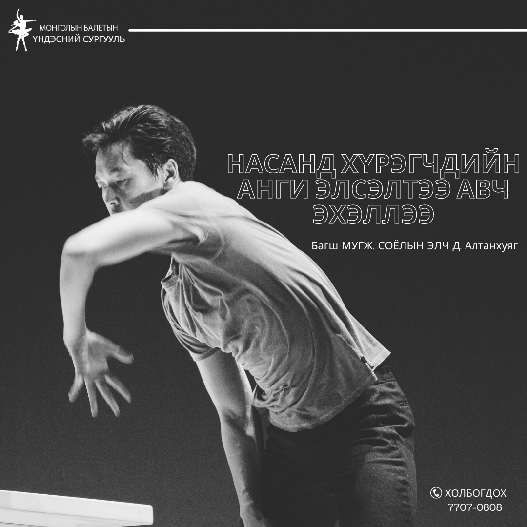 Хичээл есдүгээр сарын 06-наас эхлэн даваа, лхагва, баасан гарагт 19:30 цагаас Монголын Балетын Үндэсний Сургууль/ National Ballet School of Mongolia байранд явагдана.