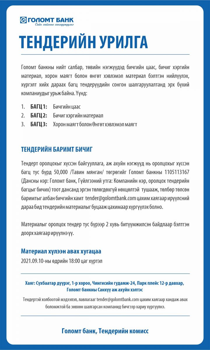 Нээлттэй ажлын байрны мэдээллийг Голомт банкн…