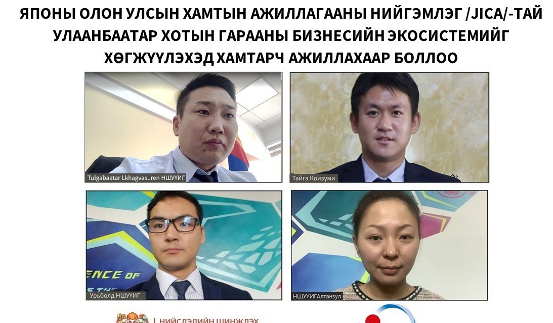 Нийслэлийн Шинжлэх ухаан, үйлдвэрлэл, инновацын газрын дарга Л.Тулгабаатар Японы олон улсын хамтын ажиллагааны нийгэмлэгийн Монгол дахь суурин төлөөлөгчийн газартай цахим уулзалт хийлээ. Уг уулзалтаар Монголын гарааны бизнесийн эко системийн судалгааг холбогдох төрийн байгууллага болон хувийн хэвшилтэй хамтран боловсруулахаар болсон юм. Судалгааны ажлын хүрээнд Монголын гарааны бизнес эрхлэгчдийн өнөөгийн байдал, эко системийн давуу болон сул талуудын талаарх судалгааг боловсруулж, дүн шинжилгээ хийнэ. Түүнчлэн Монголын гарааны бизнесийн эко системийн боломж, ирээдүйн хөгжлийн зураглалыг гаргах юм.