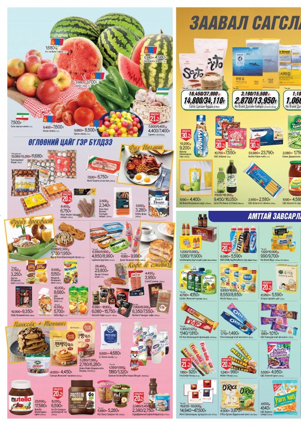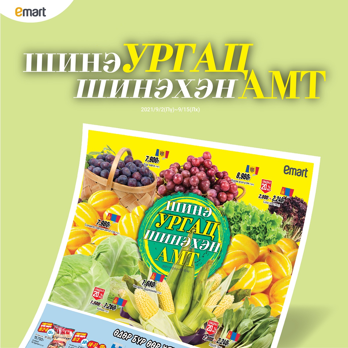 E-Mart худалдааны төвд шинэхэн ургацын шинэ жимс, ногооны хямдралтай худалдаа явагдаж байна. Эрхэм үйлчлүүлэгч таныг өдөр бүр өөр хямдрал, урамшуулал хүлээж байгааг дуулгая.