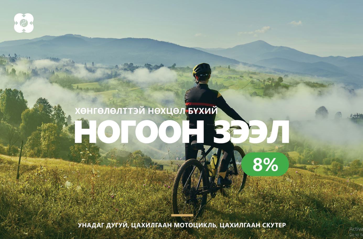 Хотын түгжрэлд алтан цагаа үрэхгүй, эрүүл мэнд болоод байгаль орчинд ээлтэй, эко сонголт хийхээр та төлөвлөж байна уу? Иргэдийн энэхүү сонголтод дэмжлэг үзүүлэх зорилгоор ХААН Банк унадаг дугуй, цахилгаан мотоцикль, цахилгаан скутер худалдан авахыг хүссэн харилцагчдадаа нэгэн таатай боломж олгож буй. Тодруулбал, банктай хамтран ажиллах гэрээтэй бэлтгэн нийлүүлэгч аж ахуйн нэгжүүдээс цахилгаан тээврийн хэрэгсэл худалдан авсан тохиолдолд жилийн 8 хувийн хүүтэй хөнгөлөлттэй нөхцөл бүхий “Ногоон зээл”-ийг санал болгож байна.