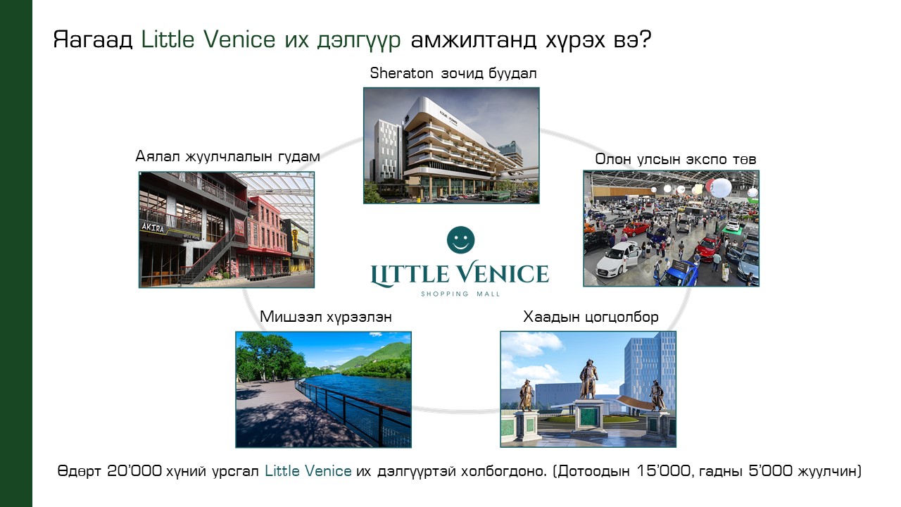 Little Venice их дэлгүүрийн орчинд байрлаж байгаа бүтээн байгуулалтууд: