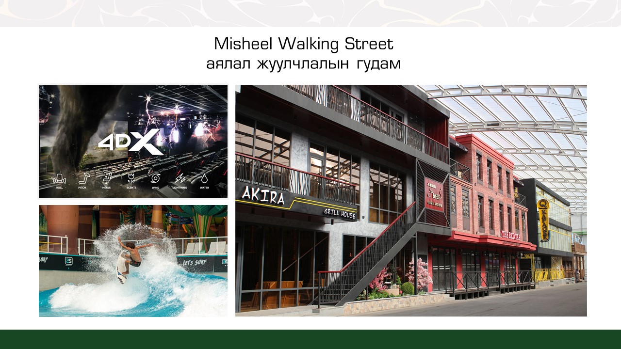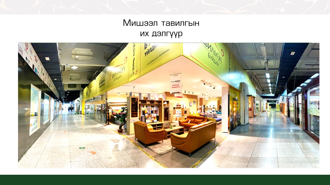 Мөн өдөртөө 20 000 хүний урсгалтай орчинд гоо сайхан, цаг, үнэт эдлэл, эрэгтэй эмэгтэй бэлэн хувцас, гутал, спорт бараа, хүүхдийн хувцас хэрэглэл, цүнх зэрэг төрөлд брэнд бараа бүтээгдэхүүнээ байршуулан худалдаалах бүрэн боломжтой.
